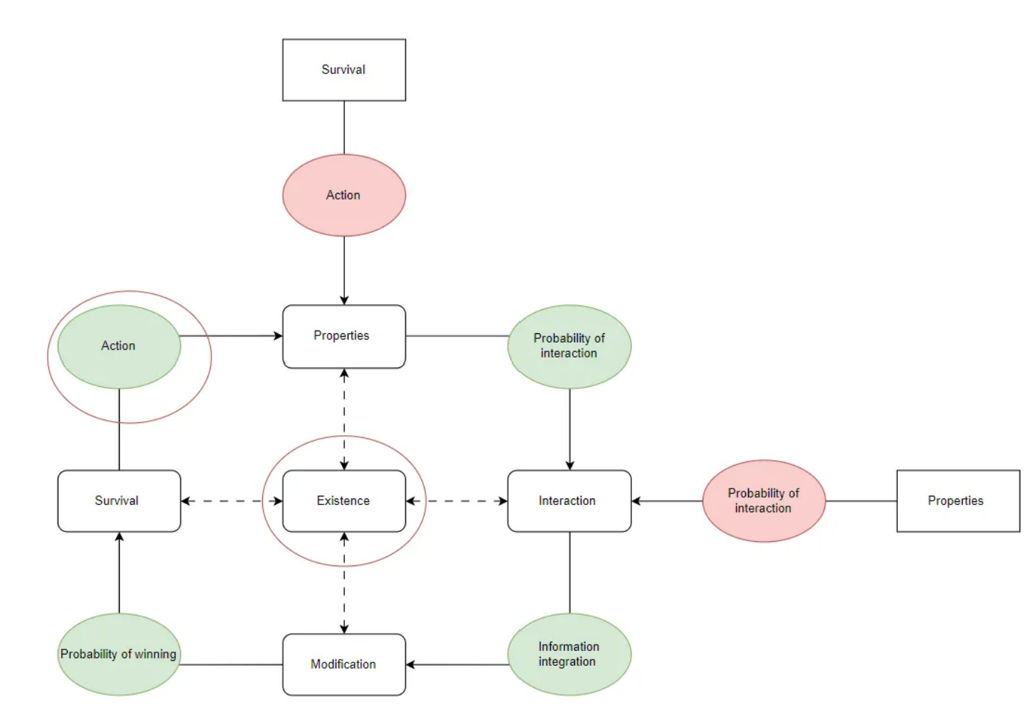 The value that results from actions, depends on the environment (external properties) a company operates in, what its capabilities (internal properties) are and the existence it’s aiming to achieve. As I explained in this post, linked to the chart below, there is a lot of randomness playing into the results coming from action, too.