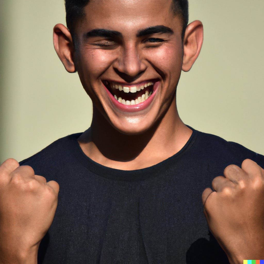 And if you all do that you might end up like this guy: “a happy and fulfilled human” generated by DALL-E, which is powered by neural nets.