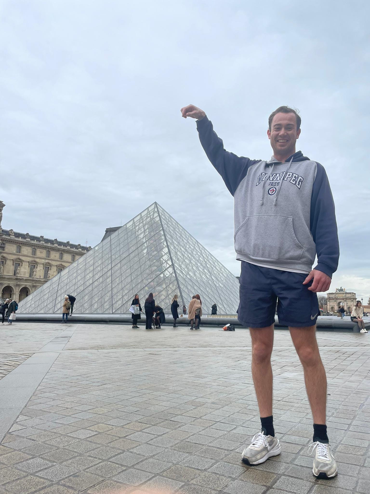 After over 1.5h of running/walking we ended up at the Louvre Museum and took this classic pic.